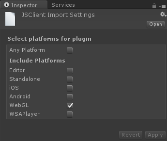 為了防止在建立 WebGL 時包含其他插件，請停用任何平台並僅檢查所需的平台。