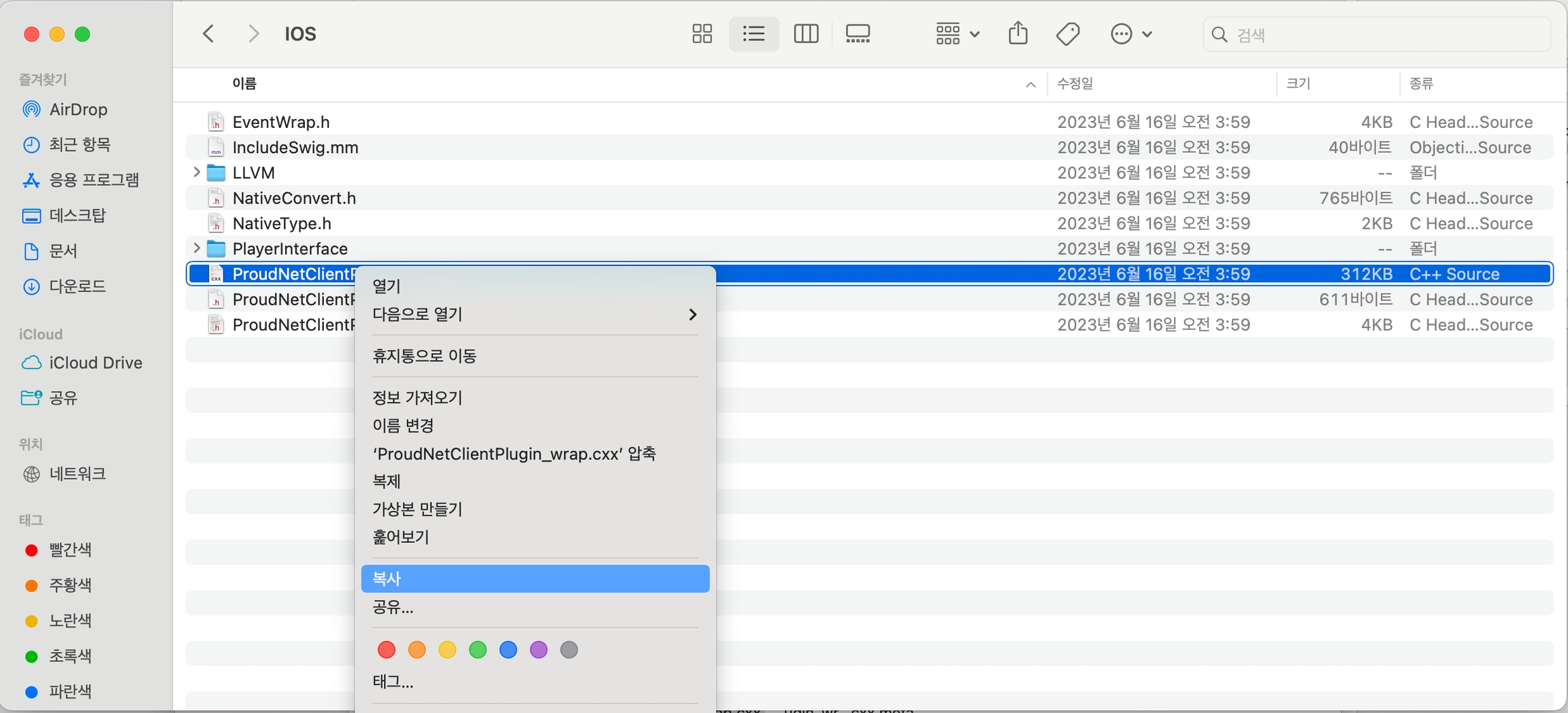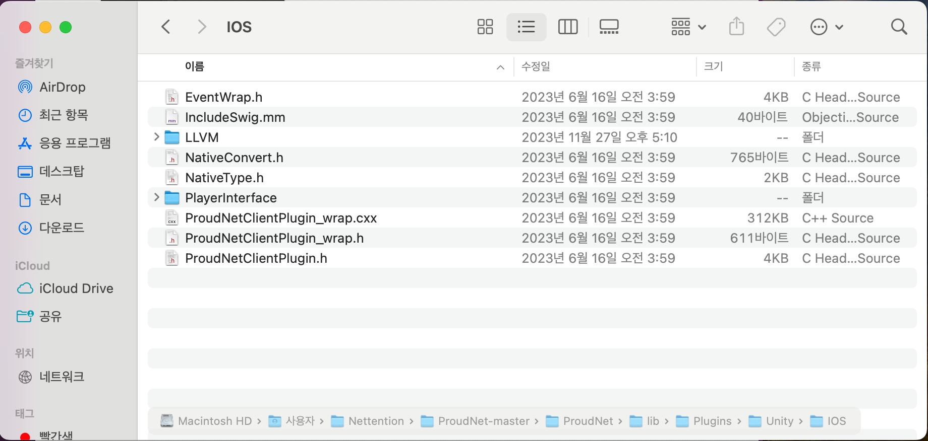 再次將 ProudNet -> lib -> Plugins -> Unity -> iOS 資料夾中的 ProudNetClientPlugin_wrap.cxx 檔案複製到 ProudNet 所在資料夾中,