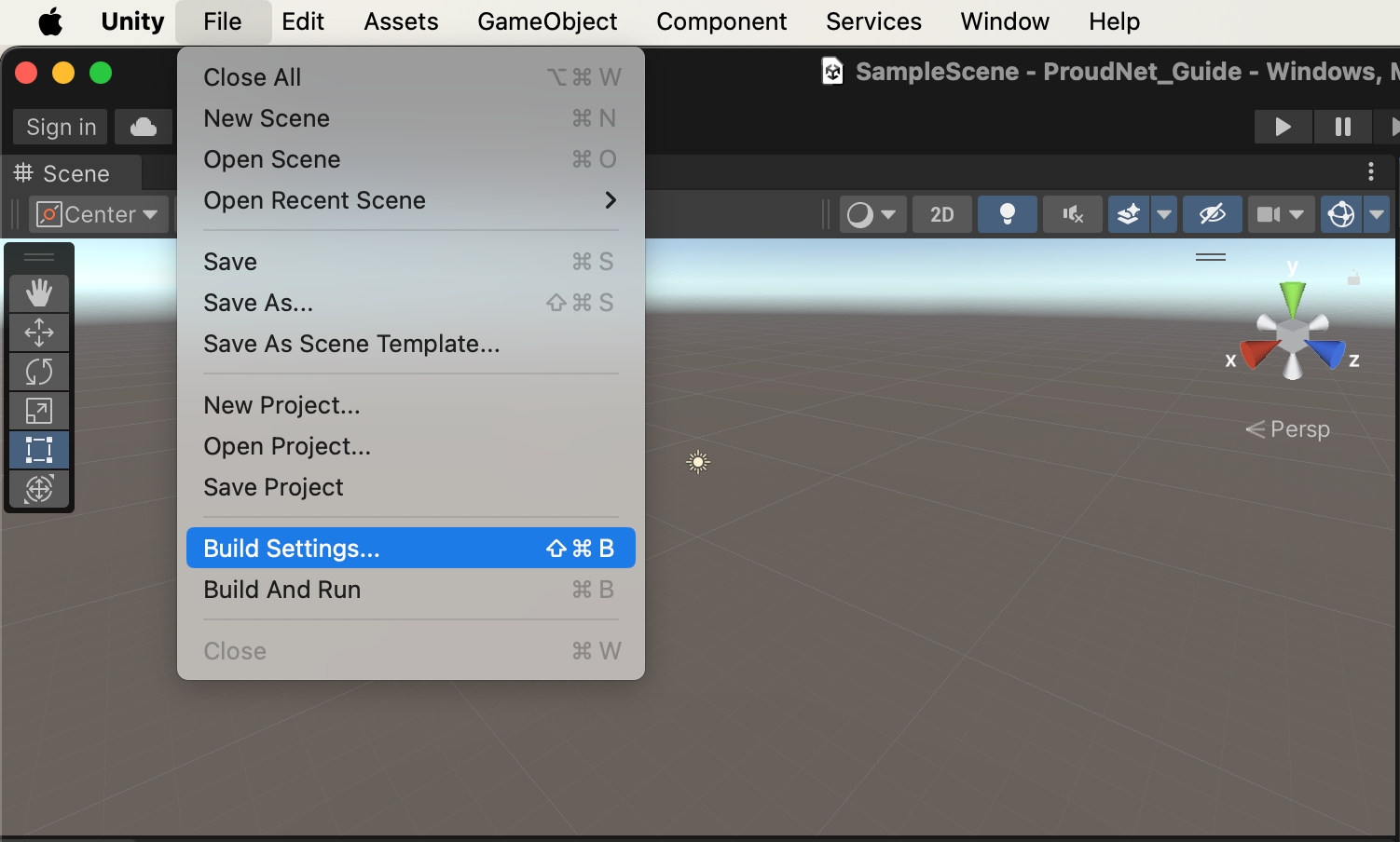 在 Mac 上,為您正在處理的項目選擇File -> Build Settings。