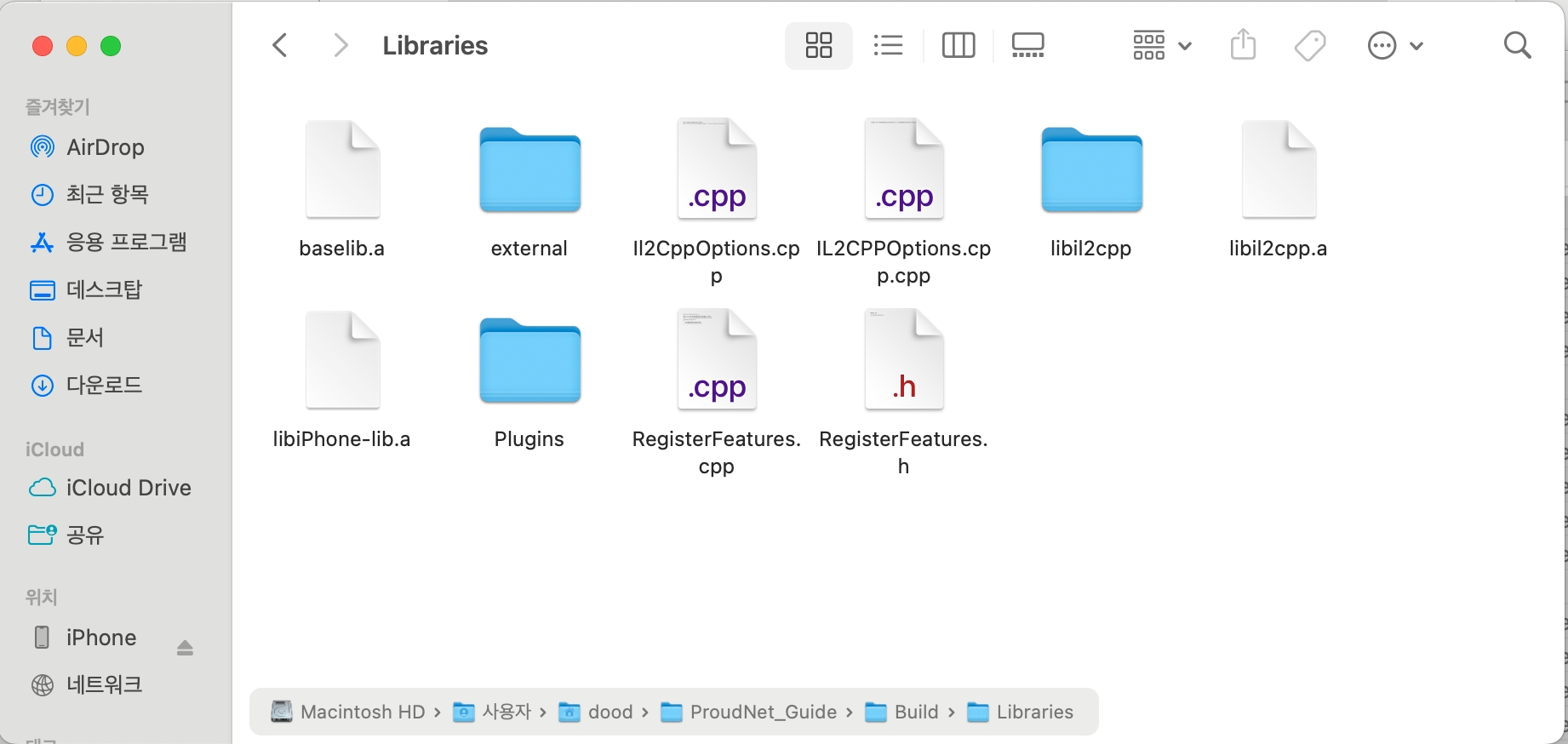 將所有複製的檔案貼到使用 Unity 建立的 Xcode 專案資料夾中的 Libraries 中。
