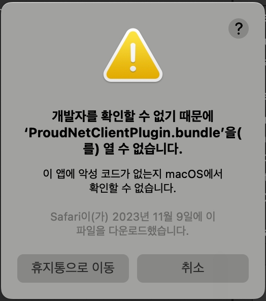 在系統設定 -> 隱私權與安全性 -> 安全性標籤中,按一下仍允許以取消封鎖 ProudNetClientPlugin.bundle。