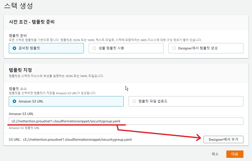 As shown in the screenshot below, you can view the full text of the provided template by entering the S3 URL when creating the stack and then clicking the View in Designer button.