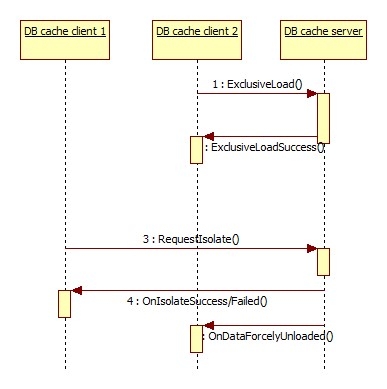 If the DB Cache System is already monopolized by one DB Cache Client and a new DB Cache Client requests exclusivity, the previous DB Cache Client will receive a request to transfer exclusivity and can accept or reject it. At this time, if the previous DB Cache Client unloads data, the new DB Cache Client will receive exclusive rights.