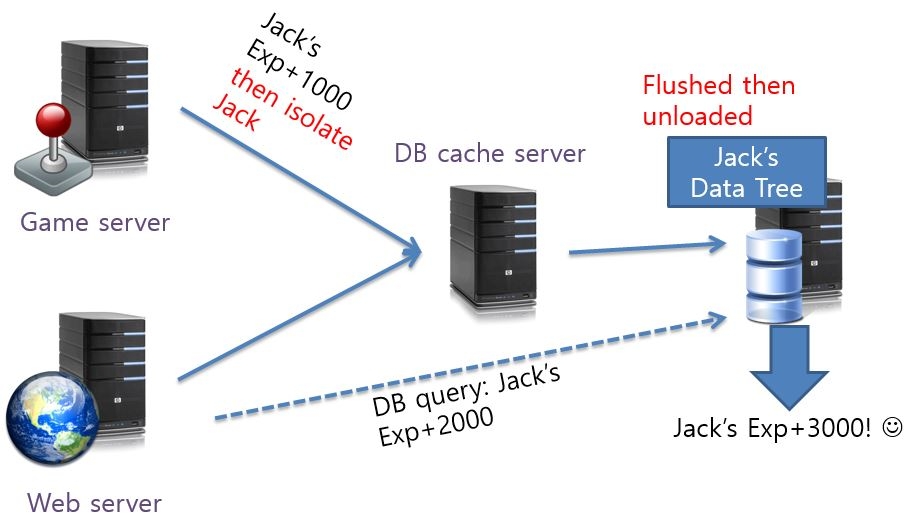 However, there are times when you want to read or write data that has already been exclusively loaded from another DB cache client. There may be cases where it is necessary to view or change the character information of a logged on player in an operation tool, such as when viewing the player character's information on a web server or adding or changing an item to the player character's bag on a paid item payment server.